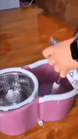 Limpia y escurre al mismo tiempo con el trapeador giratorio con cesta de plástico.
